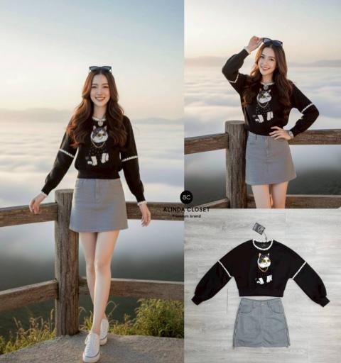 Detail : ชุดเซ็ทเสื้อแขนยาวคอกลมสีดำกุ๊นขอบคอเสื้อและเย็บรอบแขนทั้งสองข้างด้วยด้ายไหมพรมสีขาว ตรงกลางจะเป็นชิ้นงานปักลายน้องแมว จัดเต็มดีเทลน้องแมวด้วยงานตอกอะไหล่มุกและเพชรสีดำ มาพร้อมกับกระโปรงผ้าสั้นสีเทา มีซิปข้างทั้งสองฝั่ง มีซับในด้านในเป็นกางเกงให้เรียบร้อย มีกระเป๋าหน้าและกระเป๋าหลังใช้งานได้จริง 4 จุด ผ้าดีทั้งเซ็ท แพทเทิร์นสวย ชุดนี้มีแต่ความน่ารักเต็มไปหมดเลย ใครได้ไปหลงรักน้องแน่นอนค่ะ