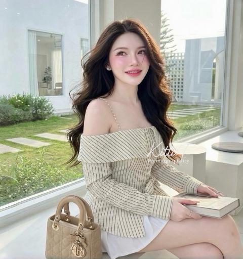 Details : Set ชิ้น คุณหนูที่มีสไตล์และมีความเป็นแฟชั่นนิสต้า เสื้อเป็นทรง เปิดไหล่ ที่มีปกพับขนาดใหญ่รอบช่วงอก เพิ่มเลเยอร์ให้ดูมีมิติ ลายทางแนวตั้ง สีครีม-ดำ ช่วยพรางตาให้รูปร่างดูเพรียวขึ้น แขนยาวทรงเชิ้ตพร้อมกระดุมที่ข้อมือ ให้ลุคที่ดูสุภาพแต่ยังแฝงความขี้เล่น กระโปรงเป็นกระโปรงสั้น อัดพลีท (Pleated Skirt) สีขาวสะอาดตา 💯