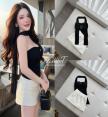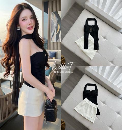 Details : Set เสื้อ+กระโปรง+เชือกคอ เรียบเท่ แอบหวาน เหมาะทั้งกลางวันและกลางคืน เสื้อสายคล้องคอสีดำ ดีไซน์คล้องคอ โชว์ช่วงไหล่และคออย่างมีสไตล์ อกจับจีบ เพิ่มมิติ ดูอกสวย ประดับอะไหล่โลหะเล็กๆ กลางอก เพิ่มความหรู เนื้อผ้านุ่ม ยืดหยุ่น ใส่สบาย กระชับพอดีตัว มีฟองน้ำ กระโปรงสั้นสีขาว ทรงตรง เรียบหรู เอวยืด ใส่ง่าย สบาย ไม่รัด มีอะไหล่ โลโก้เล็กๆ ชายกระโปรง เพิ่มดีเทลพรีเมียม ความยาวกำลังดี ดูสุภาพแต่ยังเซ็กซี่เบาๆ มีซับกางเกง💯