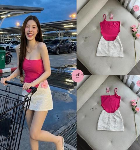 𝐃𝐞𝐭𝐚𝐢𝐥 : Set 2 ชิ้น โทนชมพู-ขาวหวานละมุน ✨ เสื้อสายเดี่ยวสีชมพูสด สายเส้นเล็กไหล่เดียวทรงเข้ารูป ผ้ายืดใส่สบาย ปลายเสื้อโค้งมนเพิ่มความน่ารักและช่วยพรางช่วงเอว ปักโลโก้เล็กๆ ด้านหน้าเก๋ จับคู่มากับ กระโปรงสั้นสีขาวปักลายดอก เนื้อผ้ามีเท็กซ์เจอร์นูนทั้งผืน ลายดอกไม้ละเอียดหวานละมุน ด้านหลังเป็น ซิปซ่อน ใส่ง่าย ทรงสวยเป๊ะไม่เสียทรง ลุคนี้ใส่ได้ทั้งวันสบายๆ คาเฟ่ เดท หรือเที่ยวทะเลแบบหวานซ่อนเปรี้ยว 🌸