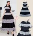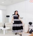 DETAIL : เดรสยาวดีไซส์คอกลม สีดำแต่งตัดสลับกับลูกไม้สีขาว เป็นชั้น ๆ งานสวยเนื้อผ้าดี มีซับในซิปหลังจ้าา