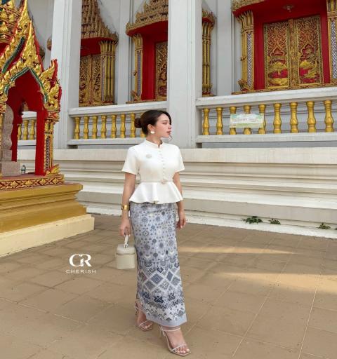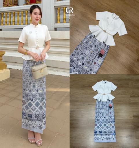 งานเซ็ท ชุดไทย 4 ชิ้น ตัวเสื้อคอกลมแขนสั้นชายระบาย