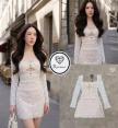 เดรสแขนยาวตัวสั้นสีขาวเว้าเอว ซีทรู งานฉลุลูกไม้ทั้งตัว เรียบ หรู ดูแพง