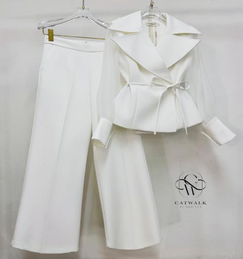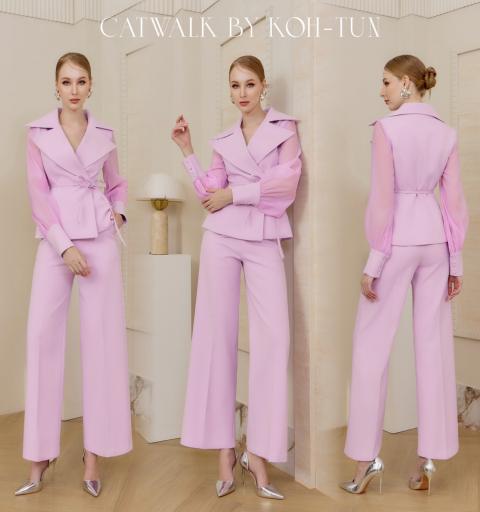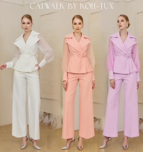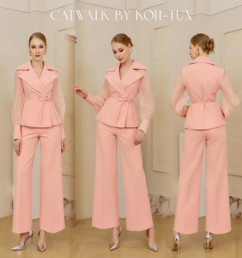 เซตเสื้อปกเทเล่อร์แขนซีทรู+กางเกงขายาวทรงสวย