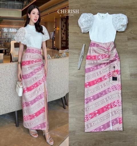 𝘿𝙚𝙩𝙖𝙞𝙡𝙨 :: ชุดไทย Set 3 ชิ้น ตัวเสื้อลูกไม้คอปีน แขนตุ๊กตาฟูฟ่องแบบเก๋ มาพร้อมซับในทั้งตัว ตัวผ้าถุงพิมพ์ลายไทยพับจีบหน้าผ่าข้างช่วยทำให้ขาดูเรียวยาว แถมเข็มขัด สวยงามอย่างไทย ใครใส่ก็ไม่เฉย ต้องจัดสักชุดนะคะ