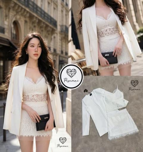 New Arrivals by PISAMAI  Ceo look แบบเฟียสๆ แบบสับ คอลใหม่ล่าสุด ทำมาให้แล้วค่า ได้ทั้งเซ็ต 3 ชิ้น แมทมาให้แล้ว สวยมากกกกกกก ต้องทัน !  Size  :: S M L XL Detail :: เซ็ตเสื้อคอปสายเดี่ยวบราลูกไม้สีขาว มาคู่กับกระโปรงสอบตัวสั้นคุลมลูกไม้ฉลุ พร้อมเบเซอร์เข้าทรงสวย สง่า เฟียสๆ แกรมๆ ได้ไม่ซ้ำใคร ต้องมีเลยค่า Color :: 1 color ( สีตามรูปงานจริง )  การันตรีงานคุณภาพ คัดติ้งประณีต ใส่ใจทุกรายละเอียดอย่างดี Size ( ขนาดโดยประมาณ  +1/-1 นิ้ว  ) S :: 32/26/36 “ M :: 34/28/38 ” L :: 36/30/40 “ Xl::38/32/42 ความยาวเสื้อ :: 19 นิ้ว ความยาวกระโปรง :: 15.5นิ้ว ความยาวเสื้อสูท :: 28 นิ้ว |