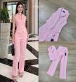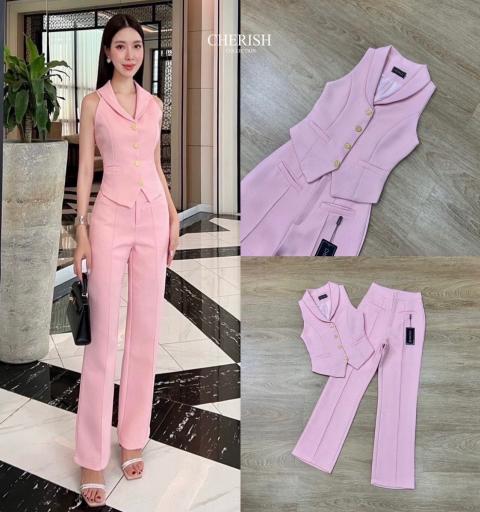 เซ็ทครอบแขนกุดผ้าทวิต ตกแต่งกระดุมสวยดูแพงมาพร้อมกับกางเกงขายาว