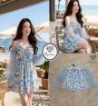 เดรสเปิดหัวไหล่ลายดอกสีฟ้า ช่วงแขนแต่งซีทรู ดีเท็ล10/10ไปเลยค่ารุ่นนี้