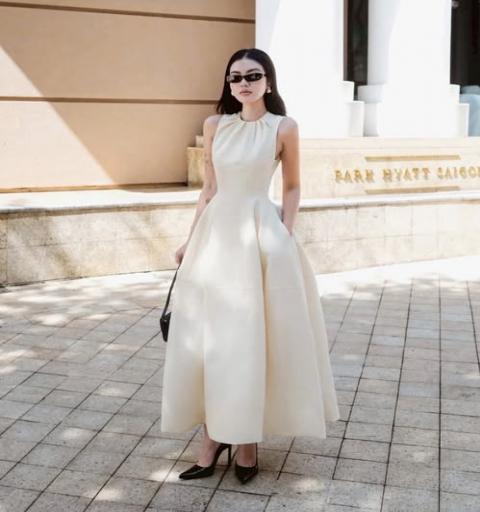 เดรสแขนกุดตัวยาวสวยทรงดี ตัวเดรสมาในผ้าเรียบเนื้อสวยมีน้ำหนักทิ้งตัวสวย
