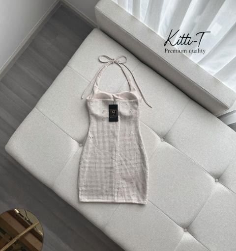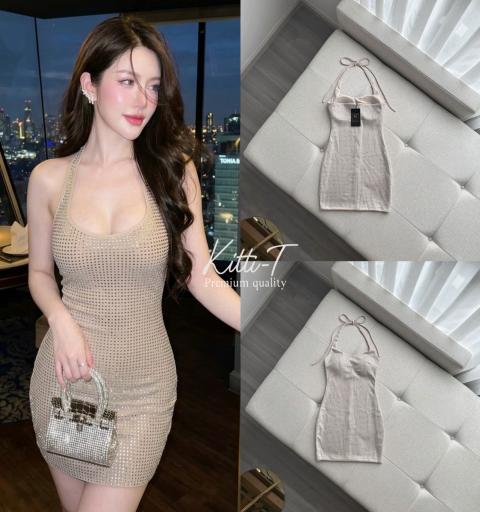 Details : Dress เป็นเดรสทรงรัดรูป(Bodycon) เน้นรูปร่าง ความยาวระดับเหนือเข่า ดีไซน์ คอเว้าลึกทรงยู ช่วยให้ช่วงคอดูโปร่งและเรียวสายเสื้อ:ป็นแบบ สายคล้องคอ ซึ่งเปิดโชว์ช่วงไหล่และหลัง ทำให้ลุคดูเซ็กซี่และโฉบเฉี่ยว ตกแต่งด้วย คริสตัลหรือหมุดเงินแวววาว วางเรียงเป็นตารางทั่วทั้งชุด ช่วยเพิ่มความระยิบระยับเมื่อกระทบแสง เหมาะมากสำหรับการใส่ไปงานปาร์ตี้หรืองานกลางคืน💯