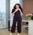 Set2ชิ้นสีดำลายทางทั้งชุด เสื้อแขนสั้น คอปกสีขาว