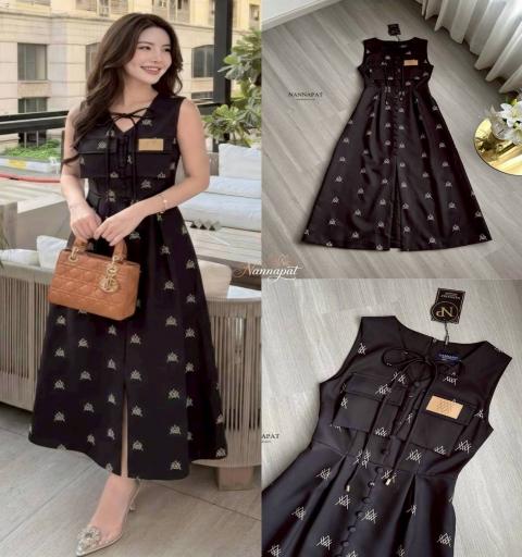 ♡DETAILS♡ ®️ "Complete Look สวยแพง สไตล์ Old Money ที่ใครเห็นก็ต้องมองตาม!" ☕🥐 มนต์เสน่ห์แห่งสีดำคลาสสิก ที่ทำให้คุณสวยโดดเด่นแบบไม่ต้องพยายาม" ✨ ✨" เดรสยาว (Maxi/Midi) ทรงเอ เข้ารูปช่วงเอว ช่วยพรางสะโพกและต้นขา ทำให้รูปร่างดูเพรียวสวย ผ้าสีดำสนิท นุ่มสวมใส่สบาย อยู่ทรงสวย โดดเด่นด้วยงานปักลายเส้นจีโอเมตริก (Geometric) สีขาว/ทองกระจายทั่วตัว เพิ่มความหรูหรา มีสายผูกโบว์ช่วงคอ เพิ่มความหวานละมุน แต่งกระเป๋าฝาพับที่หน้าอก 2 ข้าง พร้อมประดับป้ายหนังปั๊มลายที่อกซ้าย เพิ่มกิมมิคความเท่และดูพรีเมียม ชุดเดียวจบ... สวยครบทุกโอกาส (สินค้ามีจำนวนจำกัด ทักแชทก่อนไซส์หมดนะคะ!) 🛒✨