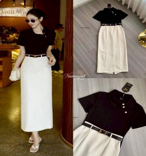 ♡DETAILS♡ ®️ "Empower Your Everyday Look… สวย สับ ฉบับผู้หญิงเก่ง" วันที่ต้องการความมั่นใจเป็นพิเศษ ลองให้ชุดนี้เป็นคำตอบสิคะ! 3 in 1 คุ้มสุดๆ ✨" เสื้อคอปกสีดำสนิท ดีไซน์ร่วมสมัย คลาสสิกแต่ไม่น่าเบื่อ กิมมิคโดดเด่นด้วยดีเทลสาบเสื้อแบบป้ายเฉียง (Asymmetrical) ประดับกระดุมสีทองสุดหรู 3 เม็ด เพิ่มความแพงให้กับลุค แขนสั้น ทรงเข้ารูปพอดีตัว ช่วยเสริมบุคลิกให้ดูสมาร์ท กระโปรงยาวทรงตรง (Straight/Pencil Skirt) สีขาวออฟไวท์ ความยาวระดับหน้าแข้ง (Midi-Maxi) ให้ลุคที่ดูสุภาพและสง่างาม มีดีเทลเดินตะเข็บตีเกล็ดด้านหน้าเป็นเส้นตรง ช่วยพรางสายตาให้ช่วงขาดูเรียวยาวขึ้น ปลายกระโปรงด้านหน้ามีรอยผ่าเล็กน้อย เพิ่มความเก๋และช่วยให้ก้าวเดินได้สะดวก พร้อมเข็มขัดให้ดูคอมพลีทลุคยิ่งขึ้น ใส่แล้วดูเป็นผู้หญิงเก่งที่มีรสนิยม จนใครๆ ก็ต้องเหลียวมอง ✨📸