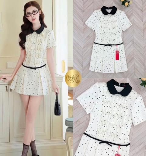 So cute ชุดนี้น่ารักสุดๆ ดูลูกคุณหนูท่านหนึ่งมากค่าาา Detail >> Dress เดรสแขนสั้น คอปก ซิปหลัง อกเย็บจีบ แต่งกระดุม เนื้อผ้าอย่างดี พิมพ์ลายpolka dot ผ้าหนา มีน้ำหนัก ชุดนี้งานสวยมากๆ รับรองใส่ออกมาไม่ผิดหวังการันตีให้เลย บอกเลยห้ามพลาดเด็ดขาดงานดีงานสวยจริงต้อง Widelia @ Real ** Size **( โดยประมาณ ) S :: อก 32 เอว 28 สะโพก free ยาว 31 M :: อก 34 เอว 30 สะโพก free ยาว 31 L :: อก 36 เอว 32 สะโพก free ยาว 33 XL :: อก 38 เอว 34 สะโพก free ยาว 33  Care :: รุ่นนี้ แนะนำ ควรซักแห้ง เท่านั้น ( Dry clean only )  แพทเทิล คัตติ้ง ทรงเป๊ะ  เนื้อผ้าเป๊ะ คุณภาพ แน่น  ตัดเย็บ ด้วยช่างคุณภาพฝีมือเยี่ยม  Everything Best  |