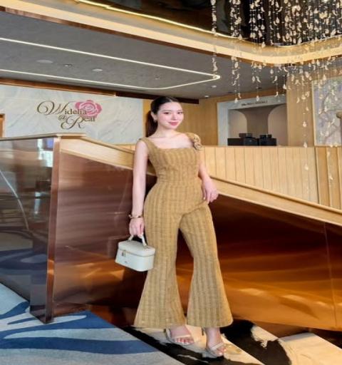 เพลย์สูทขายาวตัวสวยทรงดี เนื้อผ้าทวิตทอเลื่อมสวยทั่วทั้งตัว
