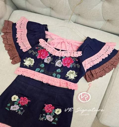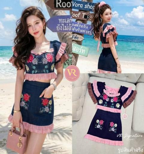 Detail :: Set เสื้อแขนสั้นแต่งระบายแขนสองชั้น แต่งลูกไม้ ช่วงอกปักลวดลายดอกไม้แน่นๆเลยค่ะ ชายเสื้อแต่งลูกไม้ มาพร้อมกระโปรงยีนส์สั้นเข้าชุดแต่งกระเป๋าด้านหน้าปักลายดอกไม้ ชายกระโปรงแต่งระบายลูกไม้ เนื้อผ้ายีนส์เนื้อดีเป็นทรงสวย สามารถแยกแมทช์กับชุดอื่นได้อีกเยอะเลยค่า คุ้มมากๆ ต้องมีติดตู้นะค่า... ใส่ออกมาแล้วเป๊ะเว่อร์ แพทเทรินเนี๊ยบสุดๆ สามารถใส่ได้ในทุกโอกาสเลยค่า...