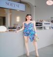 DETAIL : เพย์สูทขาสั้นเกาะอกช่วงอกดีไซส์รูปหัวใจ อกเสริมฟองน้ำ อกเอวสะโพกเข้ารูปช่วงกางเกงแต่งชายป้ายผูกเอวอีกข้าง งานพิมพ์ลายสีน้ำโทนสีน้ำเงิน งานสวยเนื้อผ้าดีมีซับใน ใส่สวยขับผิวออร่ามาก
