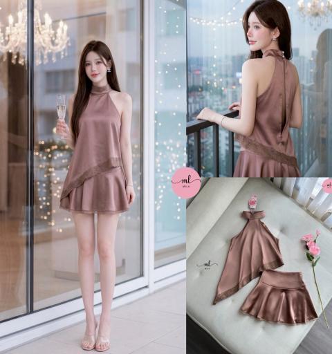 𝐃𝐞𝐭𝐚𝐢𝐥 : เซ็ต 2 ชิ้นโทนพาสเทลหวานละมุน ดีไซน์เสื้อคอคล้องคอกระดุมมุกคู่ด้านหลัง เนื้อผ้าซาตินเรียบลื่นเงาสวย แต่งเลเยอร์เฉียงด้านหน้าเพิ่มมิติ พร้อมขอบลูกไม้ละเอียดเพิ่มความน่ารัก ด้านหลังมีซิปใส่ง่าย แมทช์กับกระโปรงเอวสูงทรงบานสั้น ผ้าซาตินเนื้อเดียวกัน ชายกระโปรงแต่งลูกไม้รอบตัว ซิปข้างใส่สบาย ซับในดางเกงไม่โป๊ ให้ลุคหวานซ่อนเปรี้ยว ใส่แล้วดูคุณหนูน่ารักแต่ยังมีความเซ็กซี่เบาๆ ✨