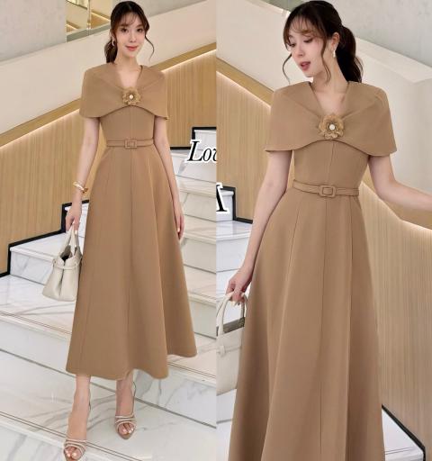 เดรสกระโปรงแต่งเข็มกลัดดอกไม้ เป็นชุดเดรสที่ใส่แล้วเสริม