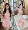 เดรสสายเกาะอกโทนชมพูหวานละมุน ดีไซน์ทรงเข้ารูปแบบคอร์เซ็ตช่วยเก็บทรงและเน้นสัดส่วนให้ดูเอวคอดอกสวย