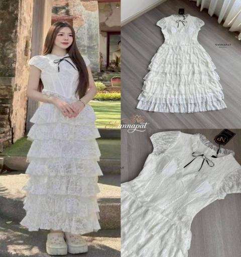 TAG :: NANNAPAT (NP)  CONCEPT :: งานต้อง Premium กำไรน้อยไม่ว่า คุณภาพ เละ เนื้อผ้าต้องดี  ♡DETAILS♡   "หวานละมุนจนคนมองต้องเหลียวหลัง... แม็กซี่เดรสลูกไม้สไตล์ Coquette ที่สาวๆ ต้องมีติดตู้" สัมผัสความโรแมนติกขั้นสุดกับเดรสยาวลูกไม้สีขาวจาก NANNAPAT ชุดนี้คือความสมบูรณ์แบบที่ผสานความหวานและความหรูหราไว้ด้วยกันอย่างลงตัวค่ะ! โดดเด่นด้วยดีเทลช่วงบนที่ออกแบบมาในทรงคอร์เซ็ต (Corset) ช่วยจัดทรงให้เข้ารูปดูมีเอว แต่งขอบระบายช่วงอกเพิ่มความอ่อนหวาน และกิมมิคสุดคิวท์ด้วยโบว์เส้นเล็กสีดำที่คอเสื้อ ให้กลิ่นอายความวินเทจแบบคุณหนูยุโรป ช่วงกระโปรงยาวที่เย็บต่อผ้าลูกไม้เป็นชั้นๆ (Tiered skirt) เวลาเดินจะพริ้วสวยทิ้งตัวดูมีมิติมากๆ ผ้าลูกไม้นิ่มใส่สบาย ซับในทั้งตัวไม่คันนะคะ  ชุดนี้ตอบโจทย์หลายโอกาสเลยค่ะ ไม่ว่าจะใส่ไปทำบุญ ไปเที่ยวชมสถานที่ประวัติศาสตร์ ถ่ายรูปคาเฟ่สวนดอกไม้ หรือแม้แต่ใส่เป็นชุดพรีเวดดิ้ง/Bridal Shower ก็รับรองว่าสวยออร่าพุ่งที่สุดในงานแน่นอน    COLOR 》》》  NP. STANDARD SIZE  ( Size โดยประมาณนะค่ะ) S }} Bust 32-33"/ Waist 27"/ Hip free M }} Bust 34-35"/ Waist 29"/ Hip free L }} Bust 36-37"/ Waist 31"/ Hip free XL }} Bust 38-39"/ Waist 33"/ Hip free  Care Dry clean only ควรซักแห้ง หรือ ซักมือ และเลี่ยงน้ำยาซักผ้า เพื่อเป็นการถนอมผ้า และ ลดความเสียหายวัสดุตกแต่ง นะคะ  ตรวจสอบสินค้าทุกครั้งก่อนออกจากร้านนะคะ จะได้ไม่เสียเวลาคะ  เปลี่ยนคืนสินค้ามีตำหนิต้องภายใน 10 วันนะคะ ป้ายไม่ตัด ห่อเดิมนะคะ  ได้รับสินค้าแล้ว ถ่ายวีดีโอตอนแกะเช็คสินค้าทุกครั้ง เผื่อมีปัญหา จะได้ใว้ยืนยันเพื่อการเปลี่ยนคืนนะคะ |