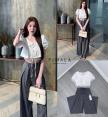 เซ็ทเสื้อแขนสั้นคอปกด้านในเป็นลูกไม้น่ารักทับออกมาทั้งตัว โทนสีขาวดีไซน์ลูกคุณมาก