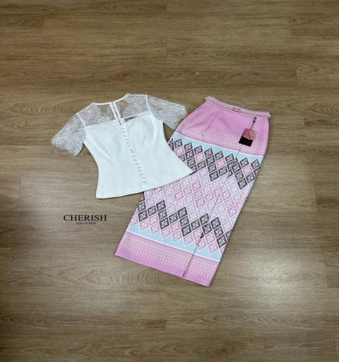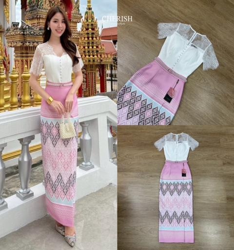 สุด Hot เซ็ทชุดไทย 3 ชิ้น ตัวเสื้อลูกไม้ซีทรูด้านบน พร้อมซับใน