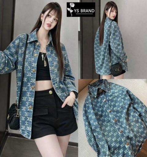 เสื้อคลุมยีนส์ Celine แขนยาว คอปก เย็บกระดุมCelineด้านหน้า