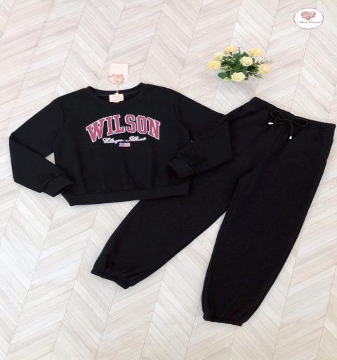 Set วอม เสื้อแขนยาวกับกางเกงขายาว เสื้อทรงหลวม สกรีนหน้าอก กางเกงเอวสม็อค