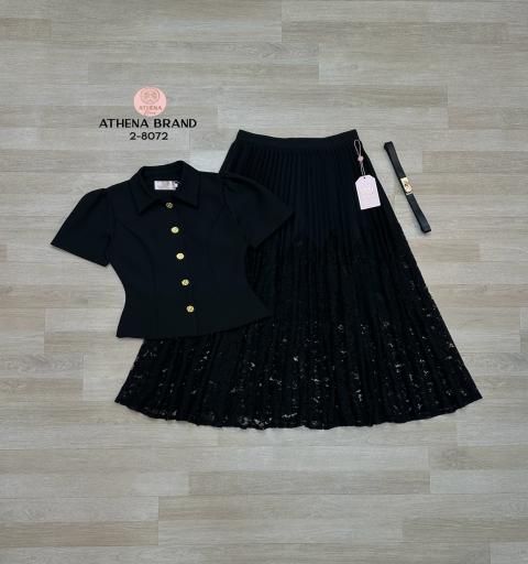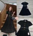 เสื้อ+กระโปรง+เข็มขัด เสื้อคอปกดีไซน์ด้านหน้าแต่งกระดุมเรียงสามารถแกะใช้งานได้จริง