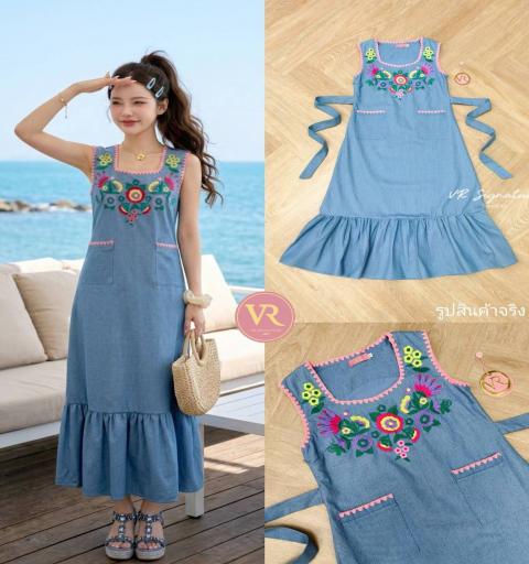 Detail :: Dress ตัวยาว แขนกุด แต่งปักกุ๊นขอบ ช่วงอกปักดอกไม้แน่นๆเลยค่ะ แต่งกระเป๋าด้านหน้า แต่งเชือกผูกโบว์เข้ารูปด้านหลัง แต่งระบายชายกระโปรง เนื้อผ้ายีนส์เนื้อหนา เป็นทรง มีน้ำหนักทิ้งตัวสวย มีซับในทั้งชุดค่า ... ใส่ออกมาแล้วเป๊ะเว่อร์ แพทเทรินเนี๊ยบสุดๆ สามารถใส่ได้ในทุกโอกาสเลยค่า...