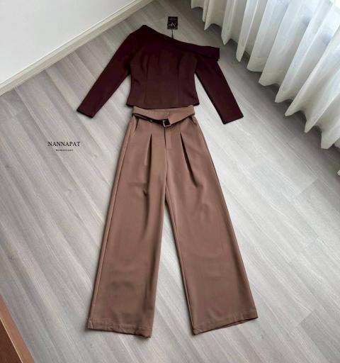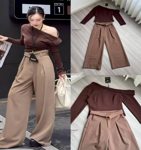 TAG :: NANNAPAT (NP)  CONCEPT :: งานต้อง Premium กำไรน้อยไม่ว่า คุณภาพ เละ เนื้อผ้าต้องดี  ♡DETAILS♡  ใครกำลังมองหาลุคที่ดูสวยแพงแบบไม่ต้องตะโกน แนะนำชุดเซ็ตจาก NANNAPAT รุ่นนี้เลยค่ะ! มาในโทนสีน้ำตาลเอิร์ธโทนสุดคลาสสิกที่ใส่ยังไงก็รอด ขับผิวให้ดูผ่องออร่าจับสุดๆ ท่อนบนเป็นเสื้อแขนยาวทรงเข้ารูป ผ้าดียืดนุ่มใส่สบาย กิมมิคอยู่ที่ดีไซน์คอปาดเฉียงโชว์ไหล่เบาๆ (Asymmetrical Off-shoulder) ให้ลุคที่ดูสมาร์ทแต่แฝงความเซ็กซี่และดึงดูดสายตา แมทช์เข้าคู่กับกางเกงเอวสูงทรงขากระบอกกว้าง (Wide-leg pants) สีน้ำตาลกากี ทรงกางเกงมีการจับจีบหน้าช่วยพรางหน้าท้องและทำให้ช่วงขาดูเพรียวยาวขึ้นไปอีก แถมผ้าดีเกิ๊น! ความคุ้มคือเค้าแถมเข็มขัดหัวสีทองมาให้ด้วย ช่วยเน้นเอวให้ดูสับยิ่งขึ้น ลุคนี้จะใส่ไปทำงาน ไปประชุม ดินเนอร์หรู หรือจิบกาแฟเก๋ๆ ก็เอาอยู่ทุกลุค ให้ความรู้สึกเป็นผู้หญิงเก่งที่มีรสนิยมสุดๆ ค่ะ    COLOR 》》》  NP. STANDARD SIZE  ( Size โดยประมาณนะค่ะ) S }} Bust 32-33"/ Waist 26"/ Hip 38" M }} Bust 34-35"/ Waist 28"/ Hip 40" L }} Bust 36-37"/ Waist 30"/ Hip 42" XL }} Bust 38-39"/ Waist 32"/ Hip 44" Langth }} = Shirt 20"/ Pants 40"  Care Dry clean only ควรซักแห้ง หรือ ซักมือ และเลี่ยงน้ำยาซักผ้า เพื่อเป็นการถนอมผ้า และ ลดความเสียหายวัสดุตกแต่ง นะคะ  ตรวจสอบสินค้าทุกครั้งก่อนออกจากร้านนะคะ จะได้ไม่เสียเวลาคะ  เปลี่ยนคืนสินค้ามีตำหนิต้องภายใน 10 วันนะคะ ป้ายไม่ตัด ห่อเดิมนะคะ  ได้รับสินค้าแล้ว ถ่ายวีดีโอตอนแกะเช็คสินค้าทุกครั้ง เผื่อมีปัญหา จะได้ใว้ยืนยันเพื่อการเปลี่ยนคืนนะคะ |