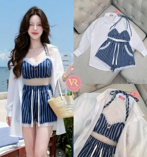 Detail :: Set 3 ชิ้น เสื้อเชิ้ตคลุมตัวยาว เนื้อผ้าใส่สบาย มาพร้อมเสื้อบราตัวสั้นผูกคอ แต่งกุ๊นขอบลูกไม้แต่งอะไหล่ช่วงอก มีฟองน้ำจัดทรงให้ค่ะ ด้านหลังสม็อค แมทช์กับกางเกงขาสั้นเอวสม็อคยืดหยุ่น เจาะกระเป๋าด้านหน้า แต่งลูกไม้ขอบกางเดงและปลายขา เนื้อผ้ายีนส์เนื้อดี ผ้าหนาเป็นทรงสวย สามารถนำไปแยกแมทกับชุดอื่นก็ได้หมดค่า ต้องจัดนะคร่า .. ใส่ออกมาแล้วเป๊ะเว่อร์ แพทเทรินเนี๊ยบสุดๆ สามารถใส่ได้ในทุกโอกาสเลยค่า...
