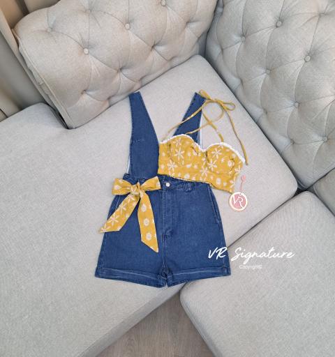 Detail :: Set เอี๊ยมยีนส์ขาสั้น มาพร้อมเสื้อครอปผูกคอ แต่งขอบลูกไม้ อกมีฟองน้ำจัดทรงให้ค่ะ เนื้อผ้าปักฉลุลายหัวใจสวยมากค่ะ มีผ้าผูกเอวให้ด้วยค่ะหรือจะเอามาผูกผมได้ค่ะ คุ้มมากๆ สามารถใส่แยกกับชุดอื่นได้อีกเยอะเลยคะ ต้องจัดนะค่า ... ใส่ออกมาแล้วเป๊ะเว่อร์ แพทเทรินเนี๊ยบสุดๆ สามารถใส่ได้ในทุกโอกาสเลยค่า...