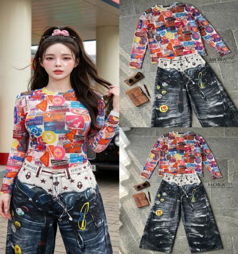 ➡️➡️ : เซ็ท 2 ชิ้น เสื้อแขนยาวแต่งลาย Patchwork สุดไอคอนิก ดีเทลสวยเก๋ ผ้าใส่สบายไม่ร้อนเหมาะกับอากาศบ้านเราตอนนี้เลยค่ะ มาพร้อมกับกางเกงยีนส์ขากระบอกใหญ่ พิมพ์ลาย3D ทั้งตัว เป็นอีกคอลเลคชั่นที่เฟี้ยวมากกกค่าาาา