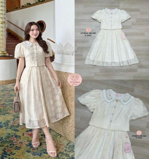 เสื้อดีไซน์คอบัวตกแต่งเพชรสวยเก๋ ด้านหน้าแต่งกระดุมเรียงสามารถแกะใช้งานได้จริง มาพร้อมซับใน แมตช์มาคู่กับกระโปรงมีกระเป๋าใช้งานได้จริงทั้ง2ข้าง ใช้เนื้อผ้าปักลายมีTexture งานมีซับใน สวมใส่แบบซิปด้านข้าง สวยหวานเรียบหรูดูแพงมากค่า