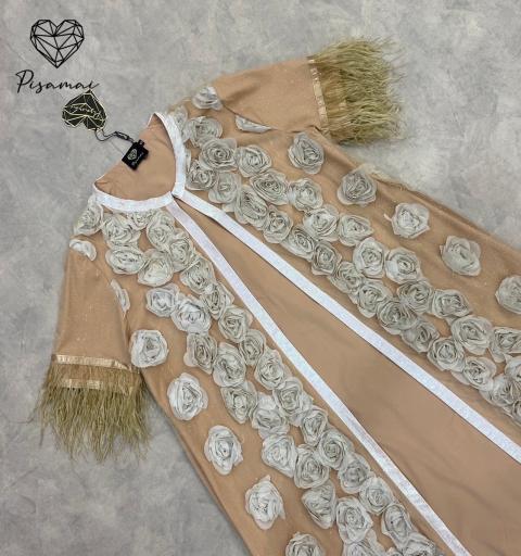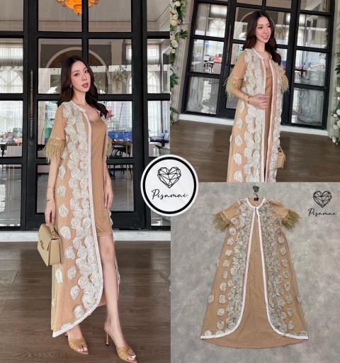 เสื้อคลุมขนนกตัวยาวปักดอก3Dสีขาวจึ้งๆ ใส่ไปงานสวยๆได้เลยค่า