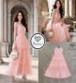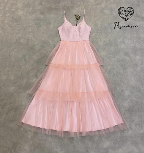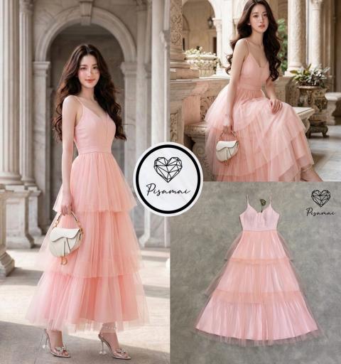 เดรสสายเดี่ยวสีชมพู ความกระโปรงเลเยอร์ฟูฟ่อง มานับพร้อมซับในให้อย่างดี