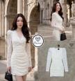 เดรสลูกไม้แขนยาวคอวีตัวสั้นสีขาวฉลุทั้งตัว สวยมากๆค่า ดีเท็ลรุ่นนี้ใส่สวย