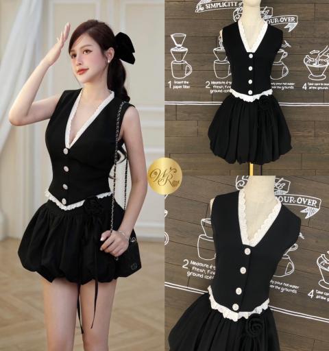 Set เสื้อแขนกุด+กางเกงสั้นบอลลูน ตัวเสื้อแขนกุดคัตติ้งสวยคอวี
