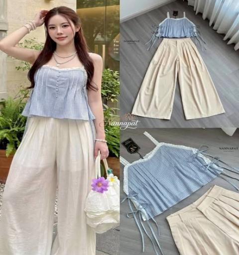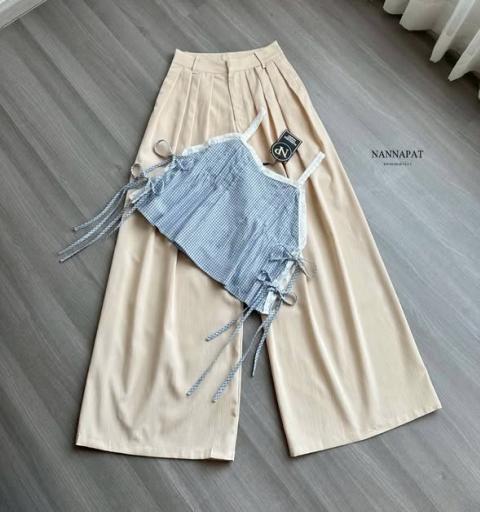 TAG :: NANNAPAT (NP)  CONCEPT :: งานต้อง Premium กำไรน้อยไม่ว่า คุณภาพ เละ เนื้อผ้าต้องดี  ♡DETAILS♡  "น่ารักปุ๊กปิ๊กสไตล์สาวเกาหลี!   แมทช์ลุควันหยุดให้ดูละมุน ด้วยเซ็ตสายเดี่ยวลายตารางสุดคิวท์" ใครชอบลุคชิลๆ แต่น่ารักจนใจเจ็บ ต้องจัดชุดเซ็ตจาก NANNAPAT รุ่นนี้เลยค่ะ! ให้กลิ่นอายความละมุนสไตล์ Cottagecore ที่ใส่แล้วดูเป็นสาวหวานขี้เล่น ท่อนบนเป็นเสื้อสายเดี่ยวลายตารางเล็ก (Gingham pattern) โทนสีฟ้าพาสเทล-ขาว ตัดขอบคอเสื้อด้วยลูกไม้สีขาวน่ารักๆ กิมมิคที่ใครเห็นก็ต้องตกหลุมรักคือ 'ดีเทลเชือกผูกโบว์ด้านข้าง' (Side lace-up) 3 ชั้น! ทั้งเก๋ ทั้งคิวท์ และช่วยเพิ่มความโดดเด่นให้ชุดดูไม่น่าเบื่อ แมทช์มากับกางเกงเอวสูงทรงขากระบอกกว้าง (Wide-leg pants) สีครีม/เบจ ทรงกางเกงทิ้งตัวสวยมากก มีการตีเกล็ดด้านหน้า (Front pleats) ช่วยเก็บหน้าท้องให้ดูแบนราบ ใส่ไปปิกนิกสวนสาธารณะ จิบกาแฟชิลๆ หรือไปรับลมทะเล ลุคนี้ก็ตอบโจทย์ที่สุดค่ะ!    COLOR 》》》  NP. STANDARD SIZE  ( Size โดยประมาณนะค่ะ) S }} Bust 34"/ Waist 26"/ Hip 40" M }} Bust 36"/ Waist 28"/ Hip 42" L }} Bust 38"/ Waist 30"/ Hip 44" XL }} Bust 40"/ Waist 32"/ Hip 46" Langth }} = Shirt 18" / Pants 41"  Care Dry clean only ควรซักแห้ง หรือ ซักมือ และเลี่ยงน้ำยาซักผ้า เพื่อเป็นการถนอมผ้า และ ลดความเสียหายวัสดุตกแต่ง นะคะ  ตรวจสอบสินค้าทุกครั้งก่อนออกจากร้านนะคะ จะได้ไม่เสียเวลาคะ  เปลี่ยนคืนสินค้ามีตำหนิต้องภายใน 10 วันนะคะ ป้ายไม่ตัด ห่อเดิมนะคะ  ได้รับสินค้าแล้ว ถ่ายวีดีโอตอนแกะเช็คสินค้าทุกครั้ง เผื่อมีปัญหา จะได้ใว้ยืนยันเพื่อการเปลี่ยนคืนนะคะ |