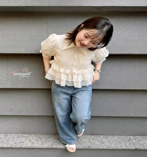 TAG :: NANNAPAT (NP)  CONCEPT :: งานต้อง Premium กำไรน้อยไม่ว่า คุณภาพ เละ เนื้อผ้าต้องดี  ♡DETAILS♡  "สวยละมุนทัชใจ!   แมทช์ลุค Casual ลูกคุณหนู ด้วยเสื้อระบายพริ้วๆ คู่ยีนส์ทรงเป๊ะ" วันหยุดนี้ใครมีแพลนไปคาเฟ่หรือเดินเล่นชิลๆ ต้องหยิบเซ็ตนี้จาก NANNAPAT มาใส่เลยค่ะ! เป็นความหวานปนเท่ที่ผสมกันได้อย่างลงตัวสุดๆ ท่อนบนเป็นเสื้อคอปกแขนพองตุ๊กตา โทนสีครีมวานิลลาละมุนตา ดีเทลแน่นมากก ทั้งงานตีเกล็ดช่วงอก ประดับกระดุมคริสตัลวิบวับ และดอกไม้ผ้า 3D สุดคิวท์ ไฮไลท์คือชายเสื้อเย็บต่อผ้าเป็นระบาย 3 ชั้น (Tiered Peplum) ทรงนี้ใส่แล้วพรางพุง ดูมีเอว แถมเนื้อผ้ายังทิ้งตัวพริ้วสวยมากค่ะ (ตัวเสื้อมีซับในให้นะคะ ใส่สวยมั่นใจเลย) แมทช์มากับกางเกงยีนส์เอวสูงทรงขากระบอกใหญ่สีบลูฟอก ทรงกางเกงคือเดอะเบสท์ ใส่แล้วขาดูเรียวยาวสับ ช่วยเบรกความหวานของท่อนบนให้ลุคดูชิค คล่องตัว และดูมีสไตล์มากขึ้น จะใส่รองเท้าผ้าใบหรือรองเท้าแตะรัดส้นก็เข้ากันไปหมดค่ะ    COLOR 》》》  NP. STANDARD SIZE  ( Size โดยประมาณนะค่ะ) S }} Bust 36"/ Waist 26"/ Hip 38" M }} Bust 38"/ Waist 28"/ Hip 40" L }} Bust 40"/ Waist 30"/ Hip 42" XL }} Bust 42"/ Waist 32"/ Hip 44" Langth }} = Shirt 20" / Pants 41"  Care Dry clean only ควรซักแห้ง หรือ ซักมือ และเลี่ยงน้ำยาซักผ้า เพื่อเป็นการถนอมผ้า และ ลดความเสียหายวัสดุตกแต่ง นะคะ  ตรวจสอบสินค้าทุกครั้งก่อนออกจากร้านนะคะ จะได้ไม่เสียเวลาคะ  เปลี่ยนคืนสินค้ามีตำหนิต้องภายใน 10 วันนะคะ ป้ายไม่ตัด ห่อเดิมนะคะ  ได้รับสินค้าแล้ว ถ่ายวีดีโอตอนแกะเช็คสินค้าทุกครั้ง เผื่อมีปัญหา จะได้ใว้ยืนยันเพื่อการเปลี่ยนคืนนะคะ |