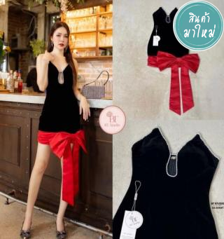 เดรสสั้นเกาะอกแต่งช่วงขอบอกด้วยเพชรไล่ลงมากลางอกเว้ากลางอกแต่งสายแทบเพชรคาดกลางอก  [พร้อมส่ง]