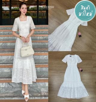 เดรสยาวลูกไม้เกรดพรีเมี่ยมสุดเก๋ เดรสคอเหลี่ยมซิปหลังใส่ง่ายสบายต่อการสวมใส่ ชุดมีซับในผ้าหนาอย่างดี  [พร้อมส่ง]
