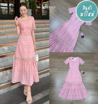 เดรสกี่เพ้าผ้าทอนูนตัวยาวสีชมพู ราชนิกูลมากๆค่ารุ่นนี้  [พร้อมส่ง]