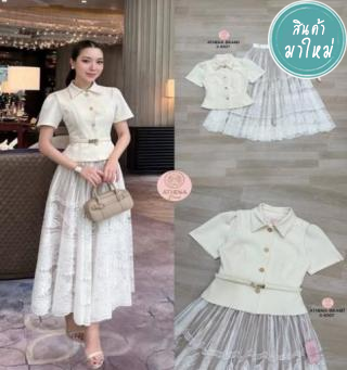 เสื้อ+กระโปรง+เข็มขัด เสื้อคอปกดีไซน์ด้านหน้าแต่งกระดุมเรียงสามารถแกะใช้งานได้จริง