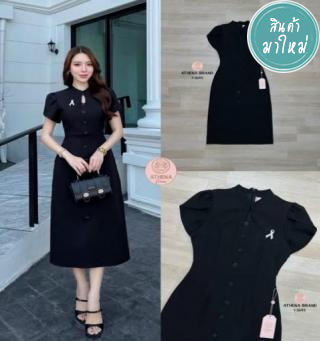 Dress+เข็มกลัด เดรสคอปีนดีไซน์แขนเสื้อเป็นทรงกลีบบัวช่วยพรางต้นแขน