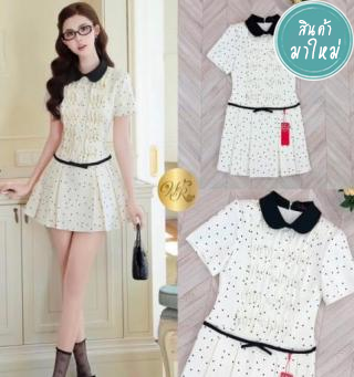 เดรสแขนสั้น คอปก ซิปหลัง อกเย็บจีบ แต่งกระดุม เนื้อผ้าอย่างดี
