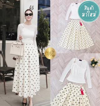 เสื้อแขนยาวกับกระโปรงยาว เสื้อเนื้อผ้ายืด อกแต่งอะไหล่ทอง