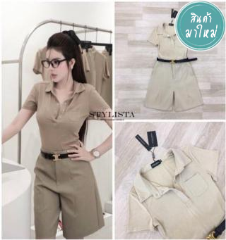 Set 3 ชิ้น เสื้อคอปกดีไซน์แต่งกระดุมแต่งกระเป๋า กุ๊นขอบสวยเก๋ ใช้ผ้าทวีตอย่างดีทอลายชิโนริเนื้อผ้าแน